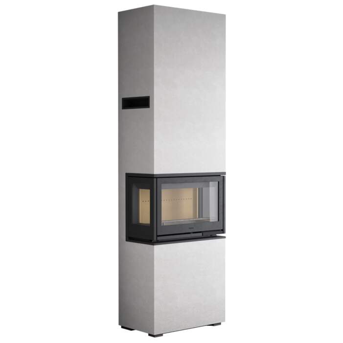 En elegant platsbyggd eldstad som är lätt att placera tack vare sin kompakta storlek. Luckan med inramning av glas ger en modern känsla och med glas på tre sidor ser du elden vart du än befinner dig. Det har aldrig varit enklare att skapa den perfekta eldstaden för ditt hem.