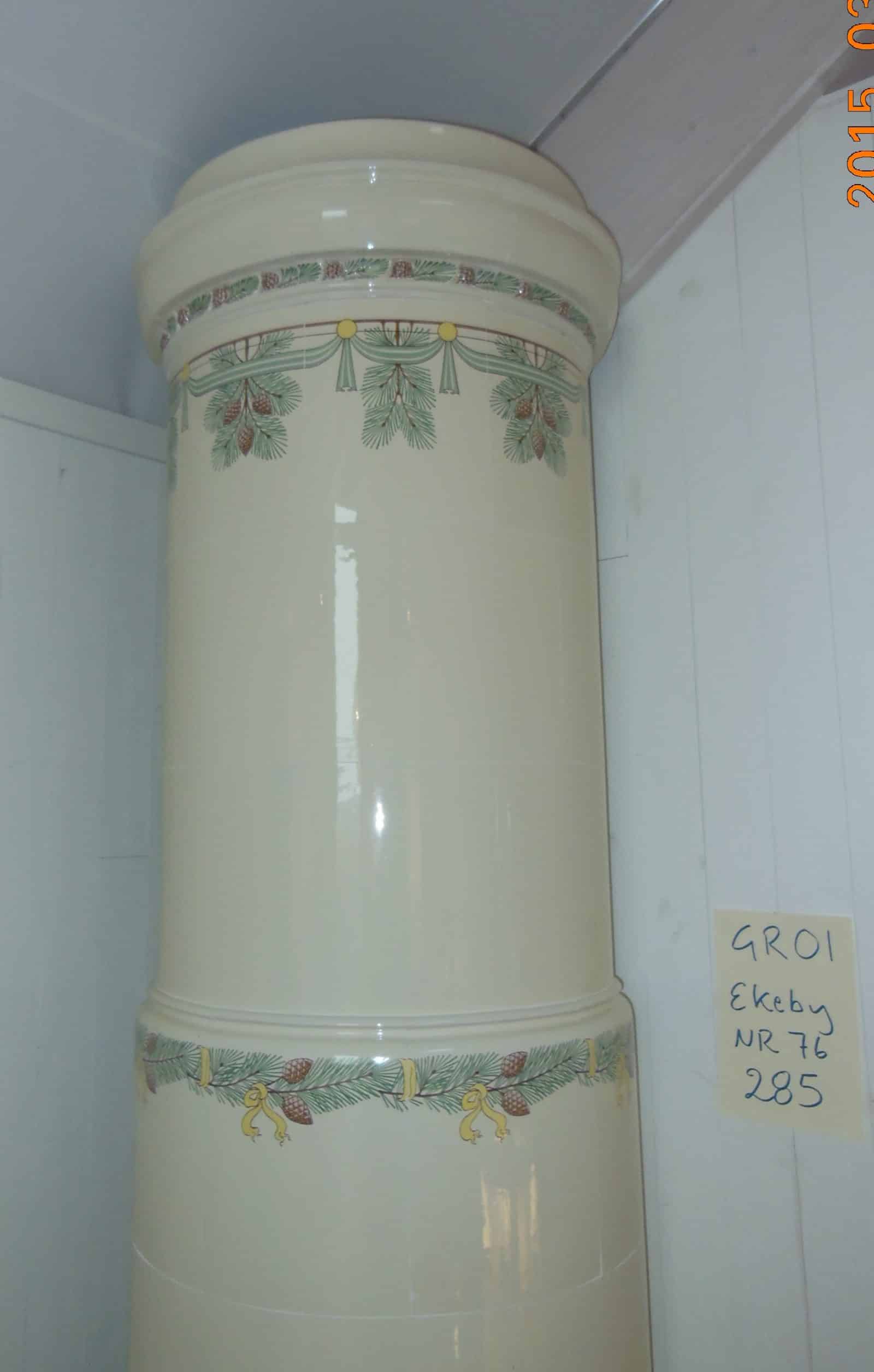 GR001 – Rund kakelugn, Uppsala Ekeby Nr 76, dekor med tallkottar