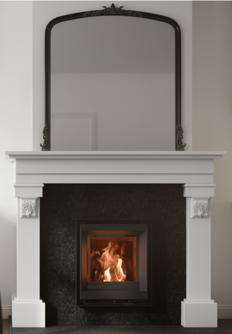 Stûv 6 är en modern insats som finns i 4 olika storlekar. Den har 4 olika täckramar . Stûv 6 kan enkelt installeras i de flesta öppna spisar.