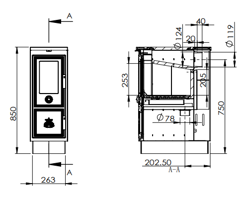 Westbo 30 är marknadens smalaste kamin med största möjliga insyn.