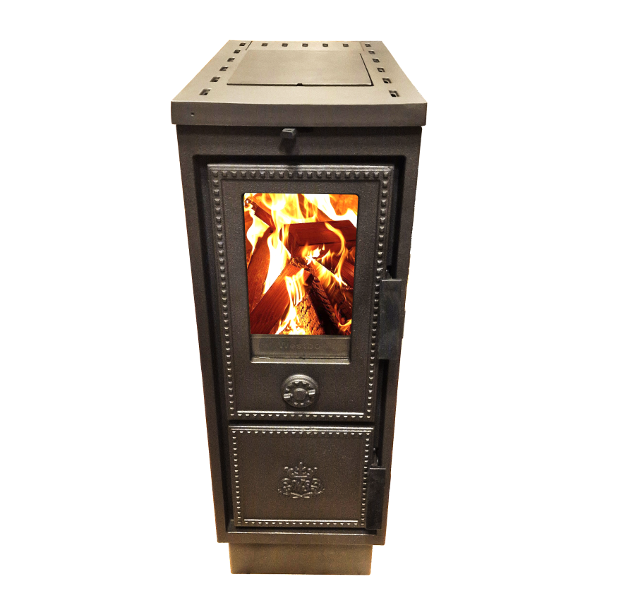 En klassisk gjutjärnsspis är lika vacker som den är praktisk. Westbo 30 är inget undantag. Den passar lika bra i hemmet som i fritidshuset och är en härlig och samtidigt praktisk värmekälla, som även fungerar utmärkt att laga mat på. Spisen är en perfekt reservvärmekälla om strömförsörjningen skulle råka försvinna. Trots sin smala bredd på 30cm har spisen en stor glaslucka som gör att elden är visuellt närvarande.